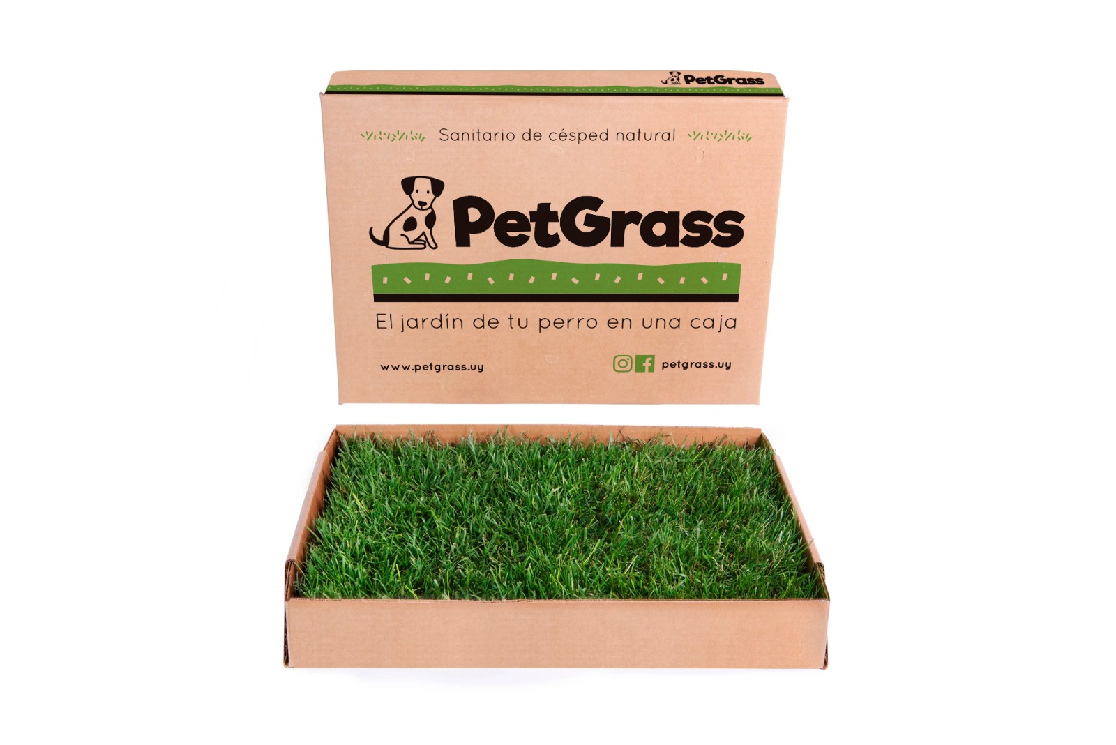 PetGrass es césped 100% natural cultivado especialmente para tu mascota, presentado en una caja de cartón resistente con base impermeable (sin plástico). Te llega pronto para usar: abrís la caja, colocás la tapa debajo como refuerzo y listo, ya tenés el jardín armado.